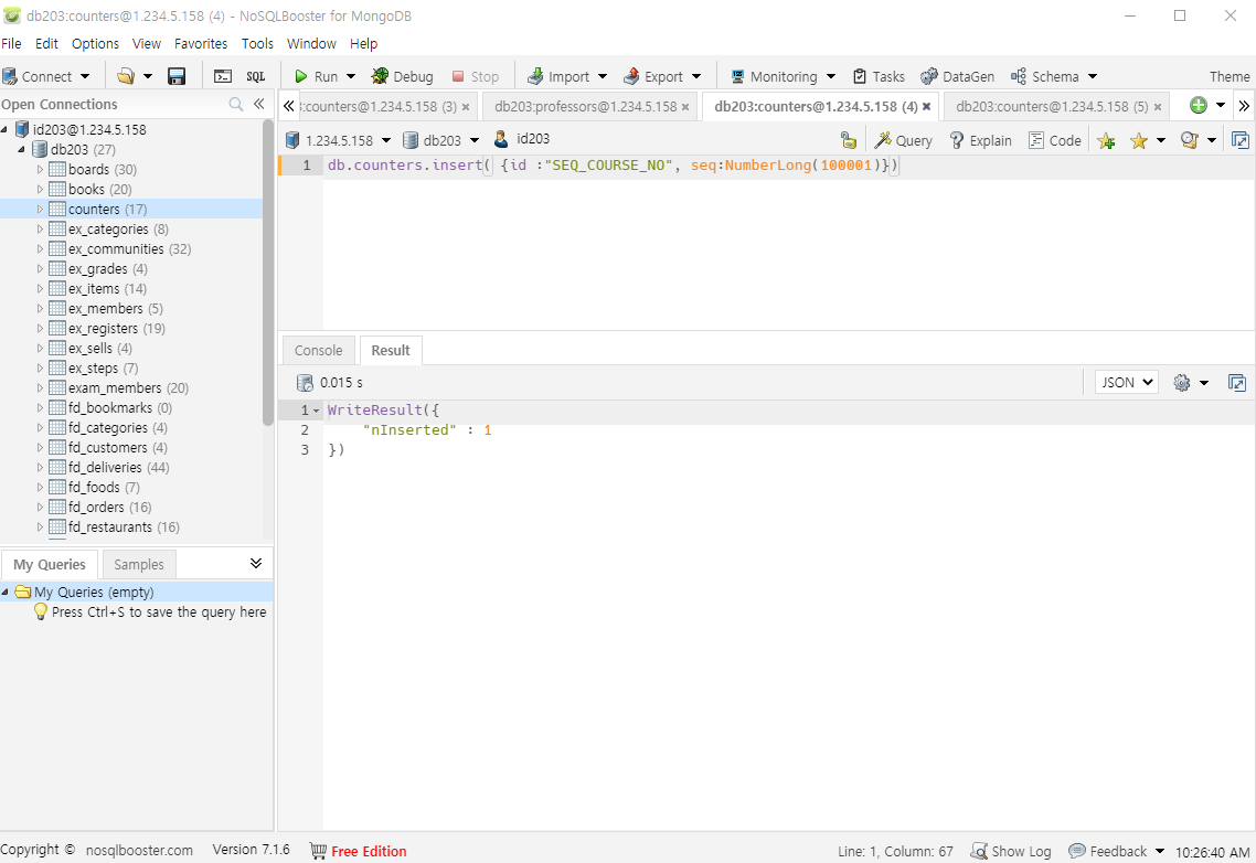 private MongoCollection<Document> collectionSeq = MongoConfig.create().getConnection("counters");