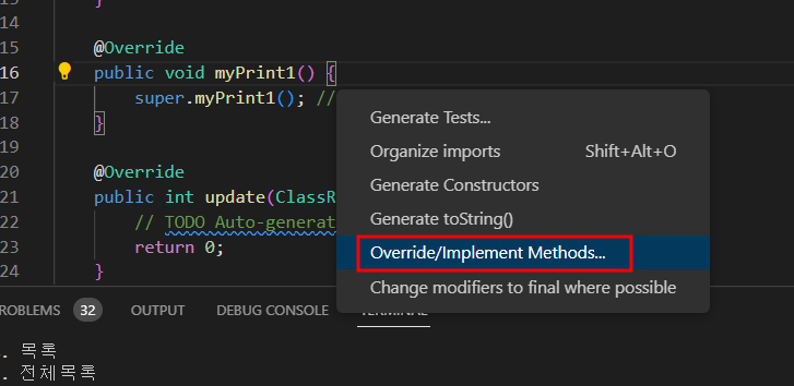 override로 myprint1가져와봄